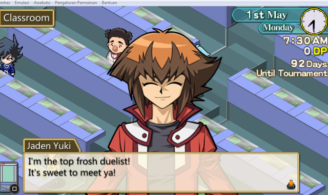 After we menenkan story mode, then we will go into this game, in this game we as a student in the school of Duel Academy. There we will introduce ourselves as new recruits.
