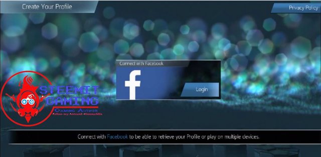 After that it will appear to log into the game and there is a facebook menu where you can login with your facebook account and you guys could also not wear a facebook account. Usability for our login with facebook account is if we replace another phone and its automatic download of us we can use directly by using our facebook account so that the missions we have been completed do not repeat it again so it can directly proceed the next mission. And here I use the facebook account so that data secure is our game. After the login account required of you letting the name for the profile of the games, after making a name we get a card named "ABSTERGO" this card indicates the account we have made on this game.