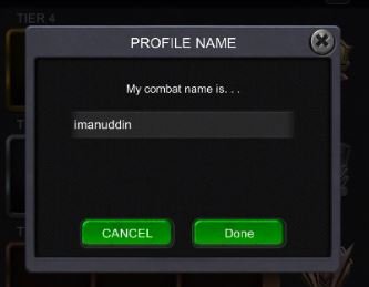 Selanjutnya setelah berhasil menyelesaikan dan memenangkan pertarungan latihan ini maka selanjutnya kita kembali ke menu yang ada pada game ini. selanjutnya setelah kita kembali ke menu yang ada pada game ini maka selanjutnya kita sebelum memainkan misi yang ada pada game ini maka selanjutnya kita harus membuat nama karakter yang ada pada game ini yang mana tersebut kita pakai sebagai identitas dari game ini. disini saya membuat nama saya sendiri yaitu imanuddin jadi kalian bisa membuat nama sesuka hati kalian. Setelah berhasil membuat nama tersebut maka selanjutnya kita harus menekan tombol yang bernama Done agar bisa menyelesaikan pembuatan nama yang akan kita pakai.