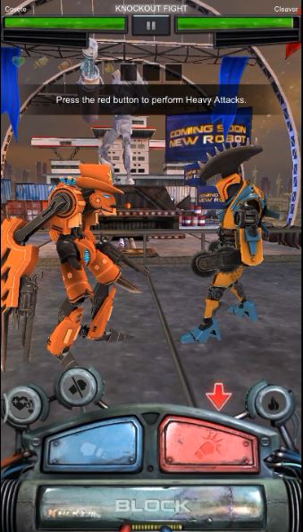 Furthermore, after we are taught how to hit by using a Quick Attacks blow then we will be taught how to hit the enemy robot with Heavy Attacks blow which this punch we do it by pressing the red button on our mobile screen and we also next we have to press the button 3 times in order to complete the punching exercise called Heavy Attacks. That could be a Heavy Attacks blow can I say with a powerful punch in comparison with a Quick Attack blow.