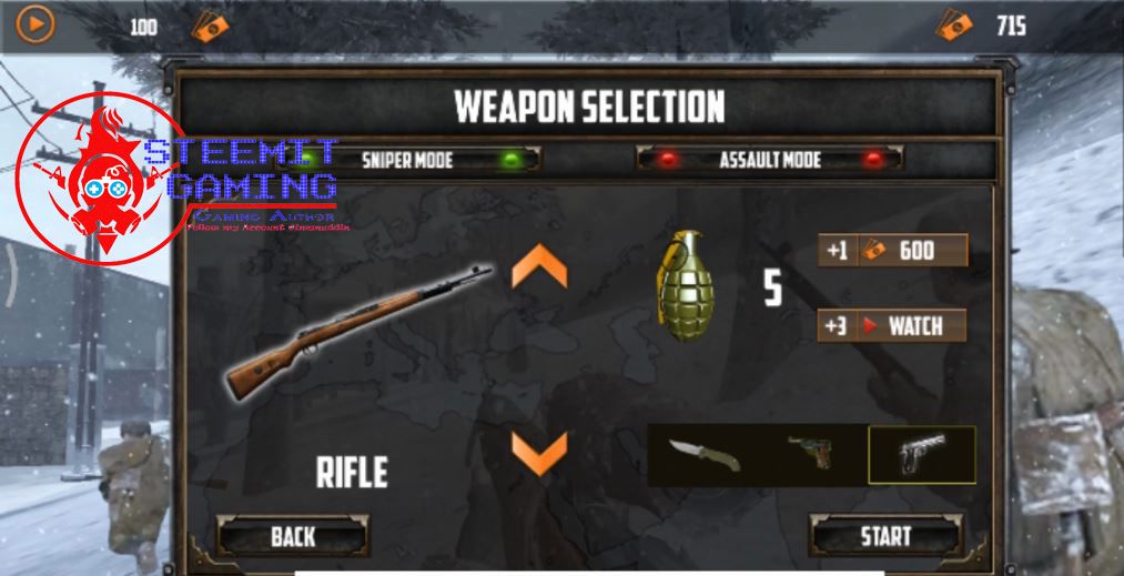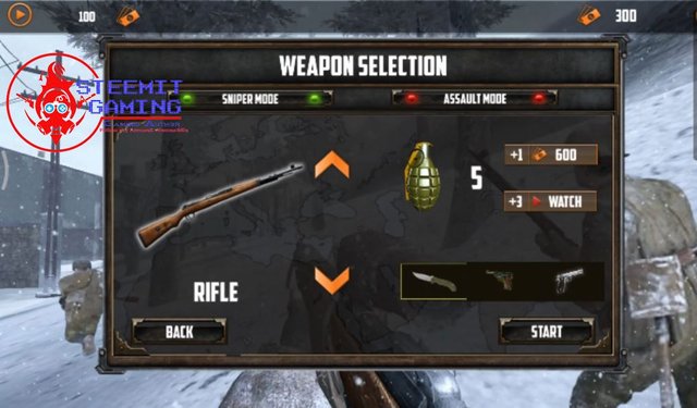 Next we will be playing a SOLO on the menu also i.e. levels that have open level 2 and also the menu will appear in which the WEAPON is the same as the menu Weapon at level 1 we must choose weapons first could start new game. which we choose SNIPER weapon and can replace weapons with buy it using money in may after completing a mission because we haven't enough money so we have to wear weapons sniper who early named "RIFLE".