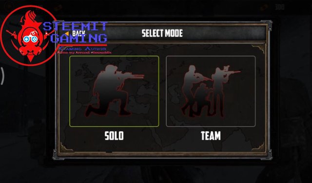 Next we went back to the main menu and to start this game we have to press the button called "START" to begin killing the enemy. the next menu will appear solo and TEAM menu.