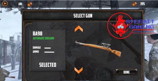 After that we will play on the TEAM menu where menu serves to play with 1 auxiliary soldiers who will be joined against the enemy so the easier we are killing the enemy who is and we here back playing at a new level i.e open level 3 and as always we have to choose a weapon that was in the menu called "WEAPON" and here I still choose weapons SNIPER and also here I bought a new SNIPER weapons with the money that we get each completed level which the weapon was named "BA98" these weapons very well used in aiming for the enemy to be right on target.