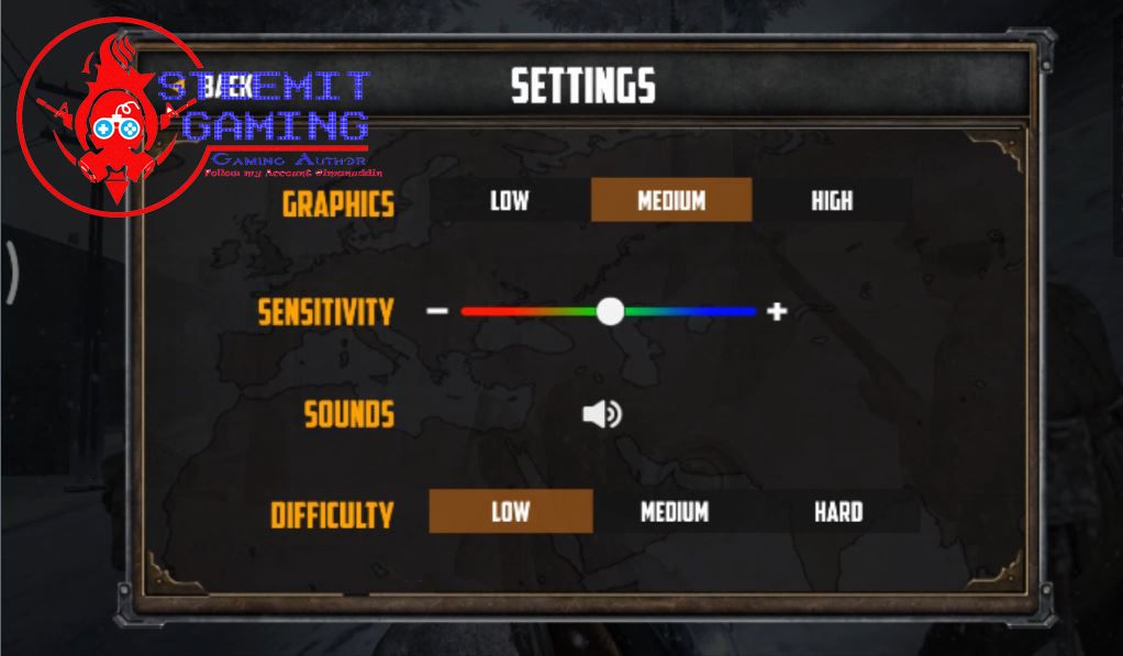 that's where this menu function to set the difficulty level of the game where the difficulty level in this menu there are three i.e. EASY, MEDIUM, and HARD which is EASY this is a game level becomes easy to kill the enemy, while the MEDIUM is the level of the game into being to kill the enemy, and the HARD is the game level becomes very hard to kill and the higher the level the more we take also will be hard to kill the enemy and in this game desperately needs a strategy in order to can kill the enemy.