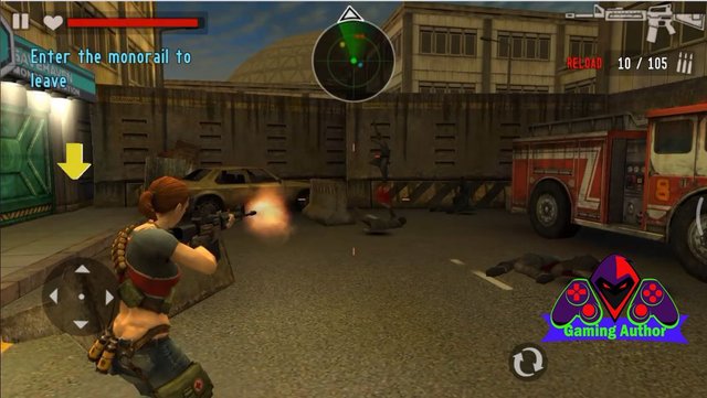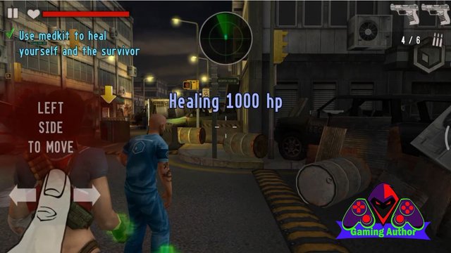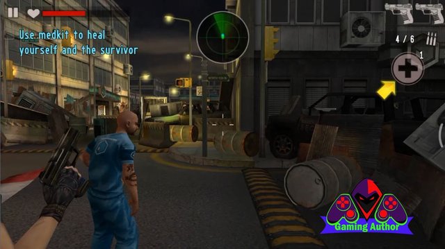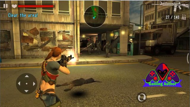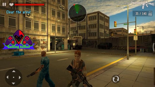 Next we in this game we have to protect someone who is where the person is in a State of injured so we had to help him toward places where so that people are not dying in the packed the zombies. And that is where the next we will be taught how to run a character which we wear here by pressing the button located on the left side who where the button such as an analog of which we should be shifting to the right, to the left, forward and retreated to run our character so that it could be heading in the direction we want to go. Next we must direct the camera towards the zombies are there in the city by the way we have to shift the use of fingers and pressing the button that has been at the point which is on the left on the screen of our mobile phones so that if managed to shift the with the fingers then we can control the camera so you can see the zombie who are before us. So after successfully directing towards the zombies are there then we can automatically firing directly toward the zombies are there so that might make them die and if it dies then we must quickly move toward a safe refuge for complete the game first. Which if you guys want to see zombies are heading toward us so you guys can see the radar is available on our mobile screen where if you want to see a zombie then it will be marked in red on the radar while if green or biri indicates we and a we protect.
