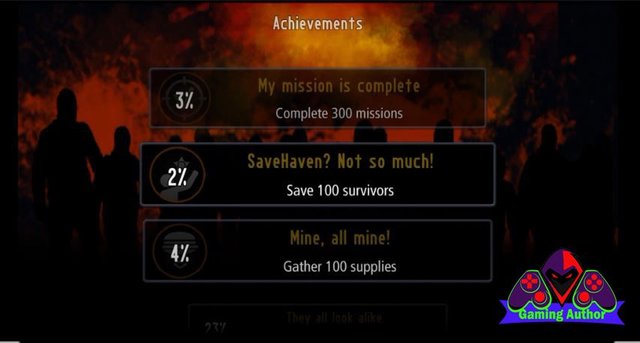 Next we went back to the main menu where in the main menu, there is a menu called ACHIEVEMENTS which this menu is a menu where we must complete the Mission in command on this menu and here is my new play this mission Just to 3 % or 4% so if you guys continue to play this game on a mission then you guys managed to complete missions in this menu up to 100%.