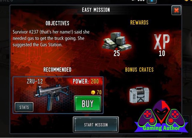 Next we went back to the main menu which we must start the first mission we need to press the blue button which we need to press the blue button in the menu of this game which is like a map that is in the city There are zombies. Next we will go where the mission is named STORY MISSION which if we successfully completed this mission then we will get the money, gold and EXP that can add a level on the characters in this game. That's where our next we must press a button named START-UP MISSION to launch this first mission.