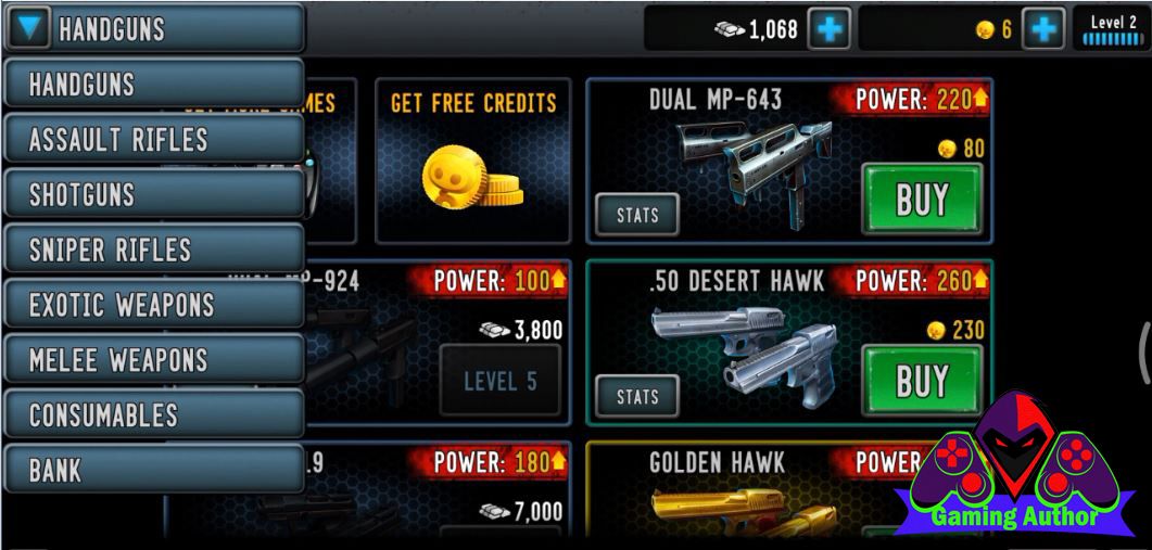 Next we went back to the main menu of the game and look for the menu called the STORE where the menu is where we buy weapons to kill zombies in this game. which in this menu there are an awful lot of weapons we buy. To be able to buy weapons that are in this menu we should use gold and money we have we get after completing missions in this game. Here are the names of the menu features a weapon that we can buy in this menu: