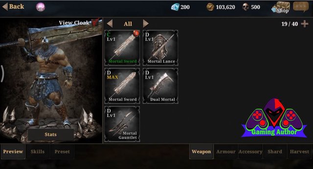 Next you guys will go on the menu which we would make our character for this games in which this first menu we will choose weapons which we will wear and in this menu there are also an awful lot of weapons we can wear but at the beginning of the game we have to choose only one weapon which we want to use. Names of weapons which should we choose are: