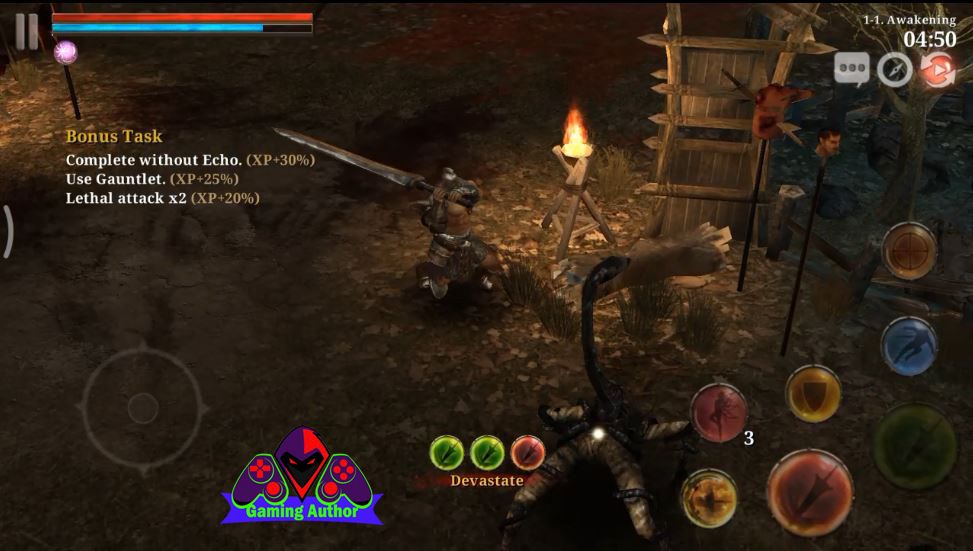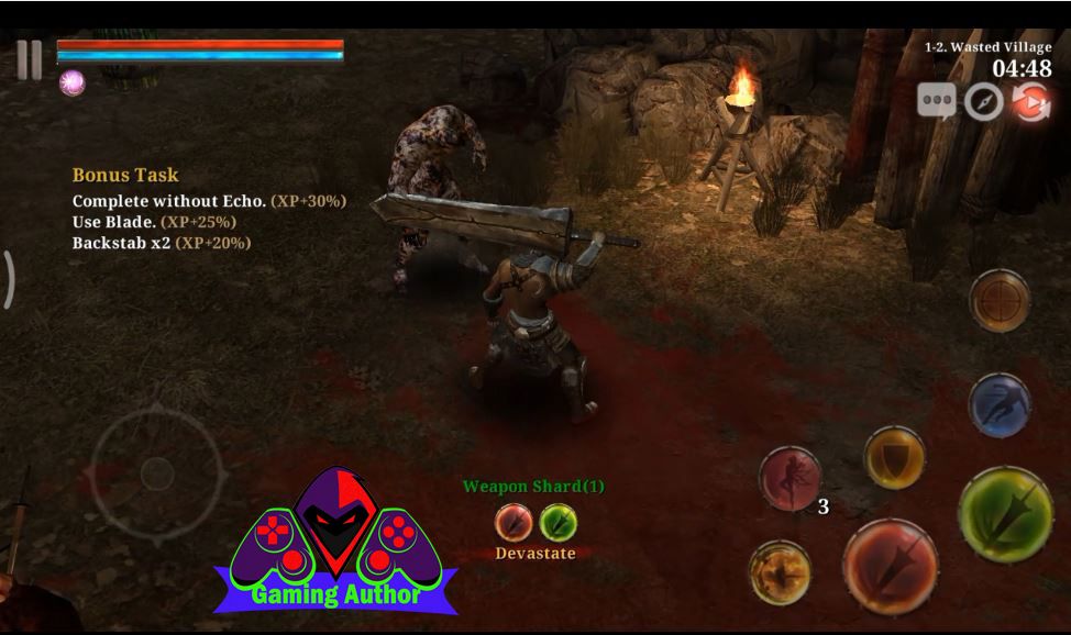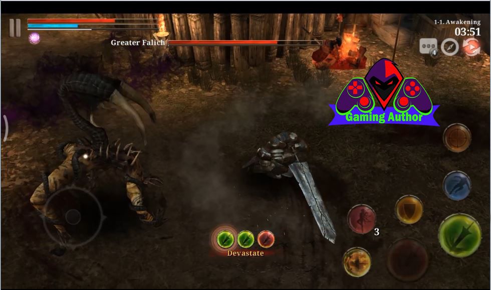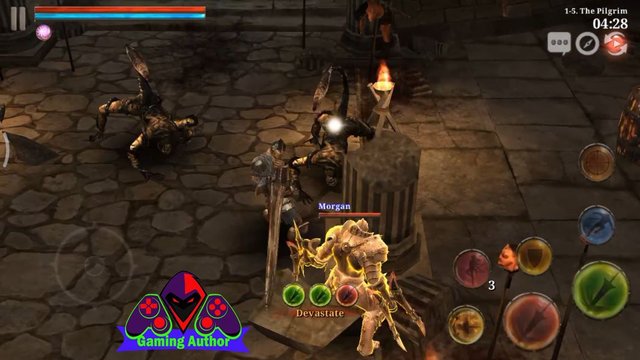 After successfully moving the character to the right, to the left, forward and backward then we will be in order how can we hit the monsters that are in this game where we have to look at the sign on the right on the screen of our mobile phone which will give Red and green sign that where to hit and kill existing monsters eat we should be pressing the button that is useful for hitting the monsters using weapons which we have selected for killing the mosnter of all that is on this game so We need to press the button to hit and kill the monsters that appear. but for stronger in bashed the monsters we must follow the ways that have been given in this game where we have to combine the blow which we should press the button Red and green button that will tell us later on in this game if you play this game.