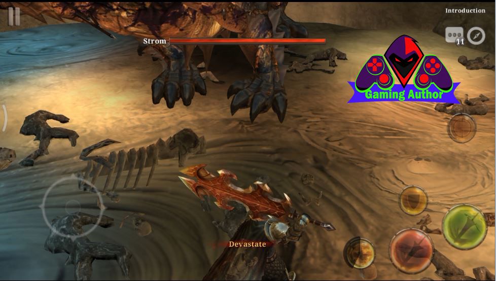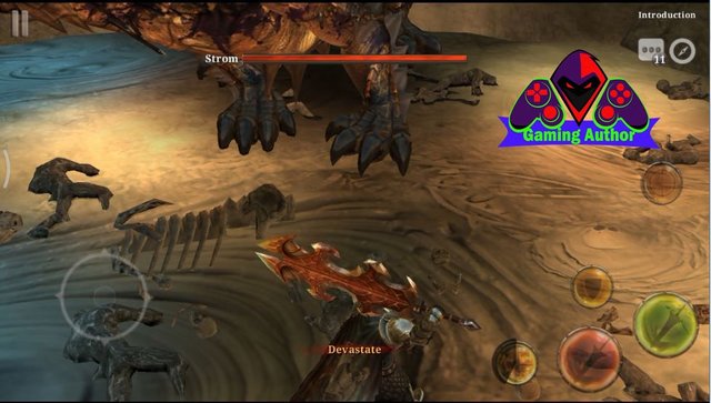 After that we will see a very wonderful monster strong in which the MONSTER is named STROM which these monsters is a very big dragon animal so that we have to fight him so that we here will then be taught how to hold attack of the mustard which we must hold it with how to view button that will give yellow mark also but has a picture of the coat of arms of which here we should press this button in order to withstand the attacks of monsters which his strength greatly so strong that we can't beat him.