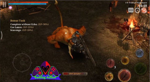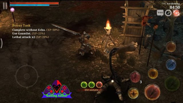 After successful entry we will see this mission which in this mission we have to kill monsters named GREATER ASH which before we kill the monsters we should kill first then we must kill the monster who appears on this mission by the same way we should be pressing the red and green are where to hit and kill existing monsters eat we should be pressing the button that is useful for hitting the monsters using weapons which we have chosen to kill all the monsters in this game so we need to press the button to hit and kill the monsters that appear. but for stronger in bashed the monsters we must follow the ways that have been given in this game which we must combine the blow which we should be pressing the red and green button that will tell us later on in this game if you guys play this mission. Furthermore if you guys want to withstand the attack of the monsters by way of looking at the button that will give yellow mark also but has a picture of the coat of arms of which here we should press this button in order to withstand the attacks of monsters. And we must also be good at seeing the blood of character that we have to give signs of lines are red and the stamina to power we will be on the blue line marked thus we must be good at keeping his second so that we are not easy to die from the attacks of monsters there. After that we find the monsters that we seek GREATER named ASH who where these monsters resemble the human-like burning his skin which we got to see the blood that owned by these monsters so we must continue to hit and hold to kill these monsters quickly. So that if we successfully completed this mission we will get prize money on this game and get the attributes of war tools we can use.