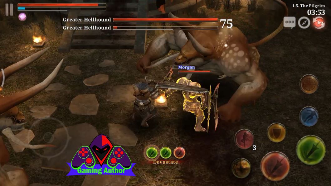 After successful entry we will see this mission which in this mission we have to kill monsters named GREATER HELLHOUND x 2 which means we have to kill 2 monsters GREATER HELLHOUND simultaneously and in this mission we will help with someone called before we kill the monsters we should kill first then we must kill the monster who appears on this mission the same way we should be pressing the red and green are where to hit and kill a monster There is a meal we should be pressing the button which is handy to hit monsters using weapons which we have chosen to kill all the monsters in this game so we need to press the button to hit and kill a monster arise. but for stronger in bashed the monsters we must follow the ways that have been given in this game where we have to combine the blow which we should be pressing the red and green button that will tell us later on in this game if you guys play this mission. Furthermore if you guys want to withstand the attack of the monsters by way of looking at the button that will give yellow mark also but has a picture of the coat of arms of which here we should press this button in order to withstand the attacks of monsters. to activate the power of the stronger then by way of using the power that we have to push the button that will give yellow mark which symbolizes the human image in the position next to the sign of the Red so we need to press the button so we can enable a very powerful force and we have to look at the cunning blood of character that we have to give signs of lines are red and the stamina to power we will give the blue line marks so from that we must be good at keeping his second so that we are not easy to die from the attacks of monsters there. After that we find the monsters that we seek GREATER HELLHOUND named which these monsters resemble such as animal fighting a very big and strong and this last dimisi we should kill this HELLHOUND GREATER monsters 2 Next we have to look at the blood that is owned by this monster so we have to keep hitting and holding in order to kill these monsters quickly. So that if we successfully completed this mission we will get prize money on this game and get the attributes of war tools we can use. And we can open up the next chapter we can accomplish its mission. But here I am just explaining 1 chapter only to find out in the next chapter so you guys can play this game and feel the thrill of playing this game.