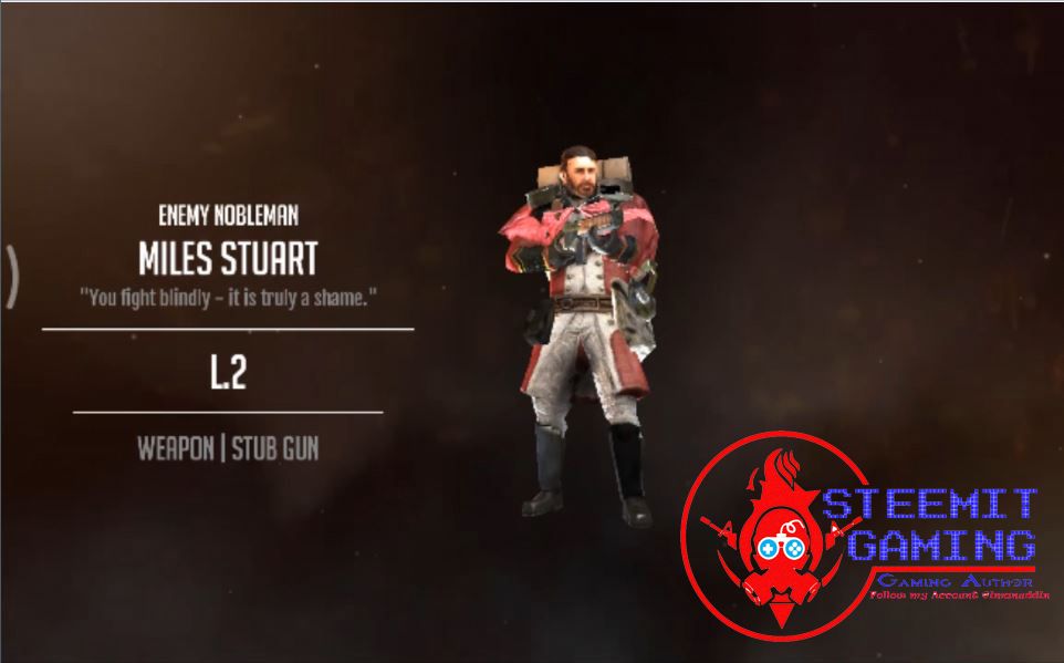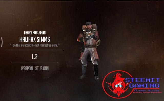After that it will pop up a menu that appears will show the picture appears the name of the enemy troops to kill and the boss named "HALIFAX SIMMS" which his enemy boss levels have reached level 2 so that it will be more difficult for us to kill the boss enemy and which also uses the same weapons as our weapons, namely weapons called "STUB GUN" so we require this boss kills and his army so that we become victorious in battle.