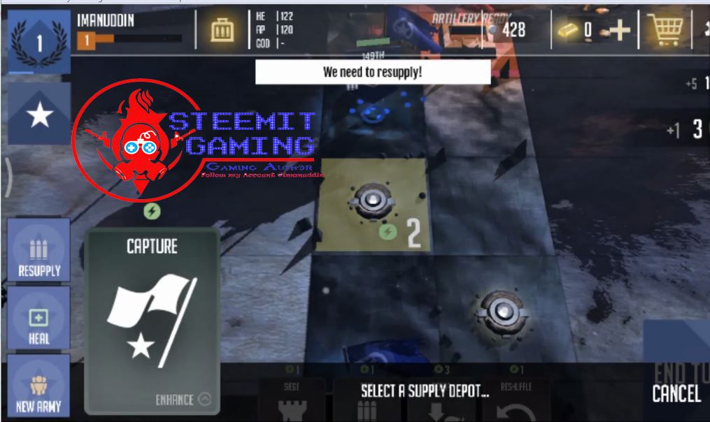 Next we started war that relied on a strategy so we must be good at wearing the strategy of the cards we get the last menu in the shop. Next we recommend first wearing a card called "CAPTURE" which is useful for destroying traps that have been supplied by enemy troops so that so that our troops when passing over the road so that our troops can fight enemy troops next we can suply our troops ammunition so our troops grew strong.