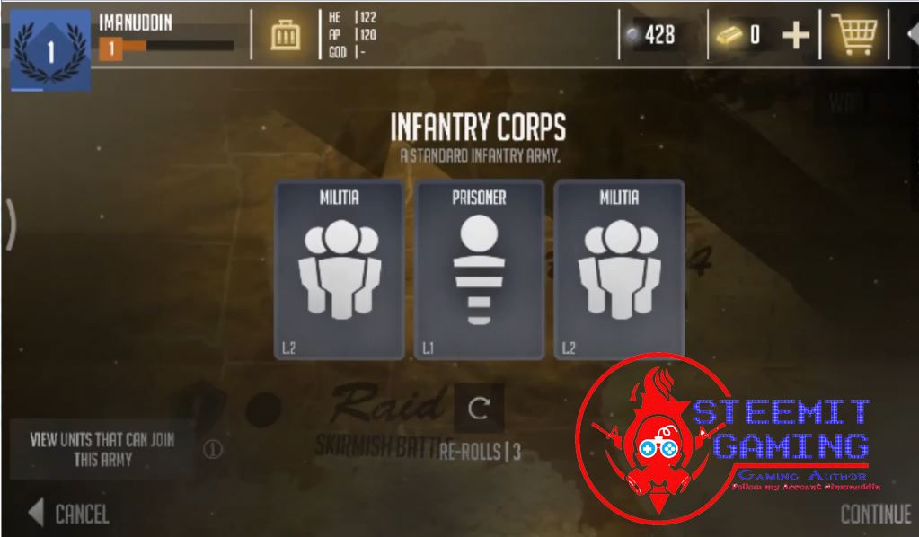 After that we will go on the menu named "INFANTRY CORPS" which this menu function to see the troops we will use before the start of the war to which here I wear 3 troops.
