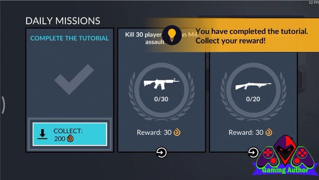 Upon successful completion of the tutorial in the game then the next we will enter into the main menu and a menu will appear where the DAILY MISSION of which this menu we will get a gift from every mission that we have completed on the DAILY This MISSION which here I just recently completed the existing TUTORIALS so that we will get a gift from the DAILY MISSION but the menu DAILY MISSION this is a daily mission that we have to solve in this game so if we play this game on the next day then the menu automatically DAILY MISSION will replace his mission so that the Mission of the day nothing is the same.