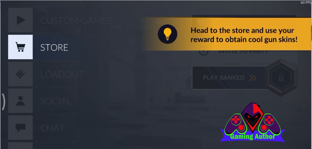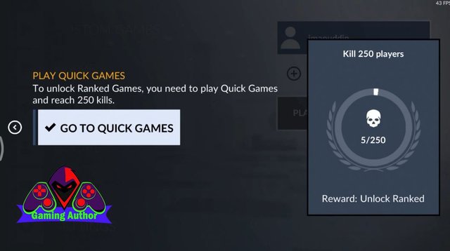 Next in this main menu there are writings that called the PLAY RANKED so I was curious and press the button. After successfully pressing the button we will tell in that we have not been able to play in this because we're RANKED MODE recently killed 5 people and to open this RANKED MODE we have to kill 250 people to open this RANKED MODE so that we recommend to play QUICK games in the menu CUSTOM MODE to be able to kill 250 people so that it can open this RANKED MODE.