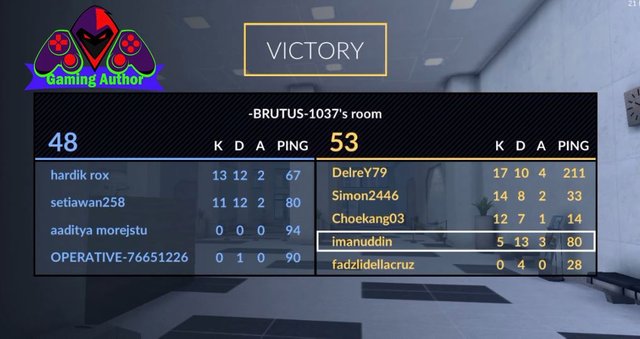 Next after successfully played to 53 ROUND it will come out the end results which our TEAM winning in this FASHION DEATHMATCH where we can see the results of how many kills enemies and in this fashion we have progress in this MODE where we can kill 5 people so we get a point 80 very nice although not much killing but we can do it with teamwork between TEAM. So I recommend to you if you want to play this game you must do it with teamwork TEAM Yes in order to win this DEATHMATCH MODE like me hehehehe.