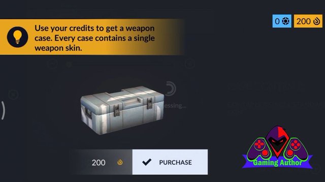 Next after we managed to get the gifts from the DAILY MISSION then we will be in a menu point to a STORE named where this menu place the purchase of weapons or tools of warfare on this game so that we require in pressing the button named STORE. After successfully pressing this button then we will see in this menu there are an awful lot of feature but at the outset of this game we will play at the point to press the menu features named PURCHASE CASES in which after we pressed the menu feature in use to buy weapons in this game. to open the crate and then we have to spend 200 coins in this game so we have to use the coins to open the crate next to open the crate then we should be pressing the button named PURCHASE.