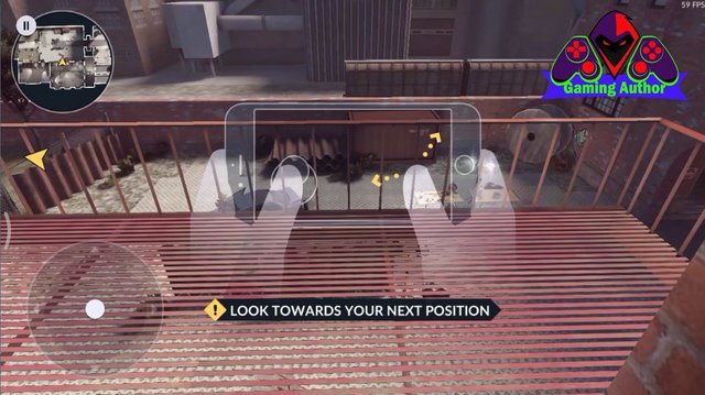Next on the tutorial of this game we will also be taught how to see enemies that are all around us which will be taught by pressing the button located on the right hand by way of shifting to the right and left to be able to see the enemy before us so we must follow the referral to be adept at playing this game. and next we have to follow the path that has been in the head with a yellow symbol in the tutorial on this game. so we have to follow him on.