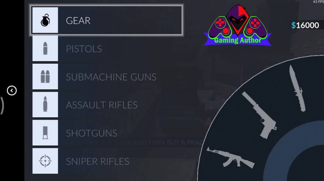 Next on the tutorial of this game we will also be taught to buy grenades where we have to push the button that will be on point like a picture rail slide located on the screen of our mobile phone. Which after we successfully pressing the button we will enter into the next menu which we should see the menu features named GEAR so we must press the button to buy grenades should we buy in game tutorial These. which after we managed to open a menu feature called GEAR then we will see in him then will appear the words PRACTICE GRENADE so that we need to press the button.
