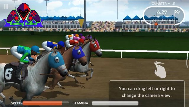 Having already started the START then we will be able to see the horses race and if we want to see a horse that we control then we can see yellow needles which are directed exactly at the horseman of an agency so we've get to know which horses us which was not our horse. Next we teach how to view and set the camera from this game to see the horses we ran with the other horses which will appear how can I direct the camera so it can find out who is ahead with shift hand to the screen where we can slide to the right and to the left to set up the camera from this game. Horse racing and in the first race this workout or we can win so that we can continue the race and get bonus prizes in the form of money that has been set at the beginning of this game. Next click CONTINUE to return to the main menu and start the next race.
