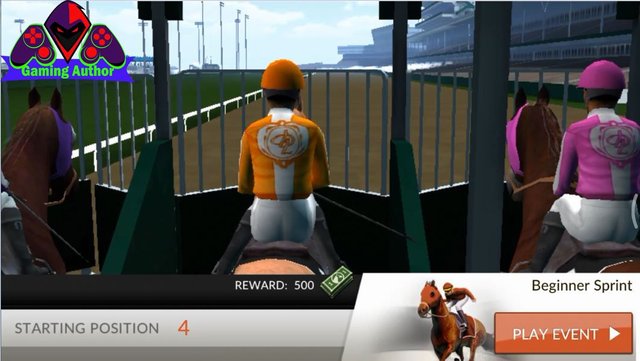 Which after that we will play in the race named BEGINNER SPRINT in which we begin to start at position 4 and if we manage to win this race so we will get a bonus prize money as much as 500. After that then we can press the PLAY button EVENT to start the race. And before the start of the race will appear a menu named TAP TO START menu which is very functional to get speed so start in the start menu which we require we press the button called TAP when the round line of the road and we stop to the place that had been set by pressing the TAP button and we must repeat his as much as 3 times and on the right you have to try to reach the point that has been on the next point when it has already done three times as much as that TAB function to add the speed horses in the beginning of the next we can start start with a position in the front which also if you guys don't get the perfect TAB by as much as 3 times but that's what's important to be in the horse's speed is preferred.