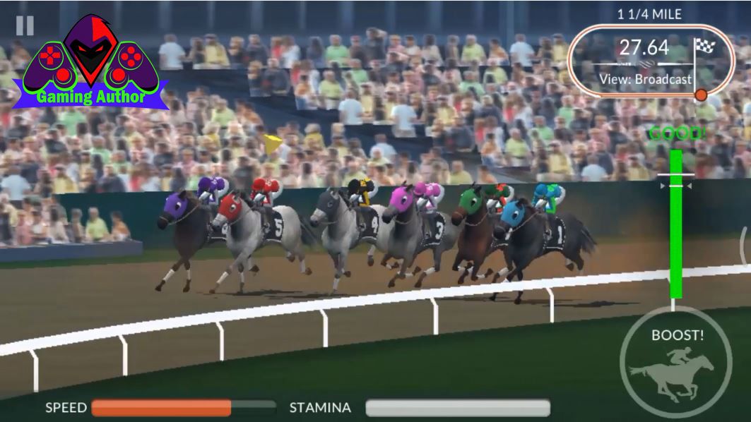After successfully signing in then before starting the START we must be good at pressing buttons named TAP as much as three times that which we must press him right on target that has been specified. which are useful to increase the speed of our horse early on so that could a quick start early in advance. But if you guys don't get it right on target then you should be good at the other set the pace. In addition to the initial speed which then after off the START then we to add speed rate our horse then we have to look at the screen of the phone you are where you should be good at looking at the SPEED of horses you guys that will be marked with colored lines Orange and you guys should also be good at looking at the STAMINA of the horses you guys also will be marked with a white line. And next you guys will also see a button called BOOST mobile screen in you guys that will be marked white. Next to these buttons function uses is to raise the SPEED of horses by pressing the BOOST button and stop it right on the line have been on point further if you guys have managed to stop it on a line that has been in point then the green line which if the line is green then the speed of the SPEED that we get will be very nice so that the SPEED that has been reduced would be increased again and we must be good at pressing the BOOST this because he is the main function of the speed of our horses and if you guys often push button BOOST the STAMINA you guys will be reduced so you should be good at using his STAMINA so that you do not run out so that if depleted speed SPEED horses We can not grow anymore so you guys must be good at pressing the BOOST. If you guys are good at regulating the BOOST button pressed and then you guys will win as I am in a MAJOR EVENT named BALTIMORE STAKES which in this event we must do that 1st round was very long that arena where we can see the arena in our mobile screen is on top of the right hand so we must be good at playing a BOOST to be able to win in this second event and if you win then you will get bonus prizes in the form of money that you have in set at the beginning of this game. Next click CONTINUE to return to the main menu and start the next race where we have opened up MAJOR EVENT menu 4.