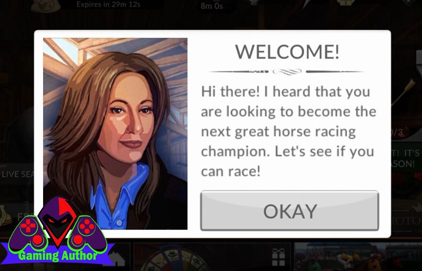 Next will come up someone who wants to help us teach how to play this game in which he'd like to see us start races horse racing championships before following that are in this game. A safe after we press the OKAY to start a race that we can refer to as exercise.