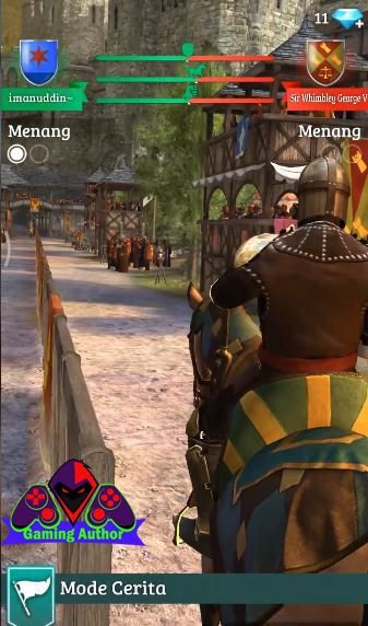 Next we played in the second mission which we should also match the spear while riding on horses and on this mission is the simplest mission we just drop the opponent into the ground to become a winner and if you can finish the fight this meeting then we will get a prize money of gold coins. To start the mission then we should be pressing the button that reads the fight so that we should press him to get into a fight. And we got to see the Royal seal that will be marked with red stones so that it serves to play every mission in this rose LEAGUE so we have to wear one of the Royal seal on each mission so we play each mission should be We win so as not to needlessly issued a royal seal. This second mission in battle we will fight a man named SIR AILWIN which we must defeat him in order to be able to open and play the next mission. Before the START at the start will appear a menu called SELECT BOOSTERS which the menu there are three coat of arms that can help to strengthen the batting as well as strengthening and speeding up the running horse but must be bought with 5 or 6 diamon but I recommend you guys don't buy it because the power is only valid in one mission only. After that you must press the button called MAIN to start the fight. If you would like to add further strength in the early start then you should be good at doing her in a way we should be pressing any key simultaneously with the forward then it will get the initial speed bonus which is useful for Add initial speed compared with the enemy. So if you guys want to ride fast then you should be able to get this early boosters. After you guys managed to get the initial speed so you guys can see the lines that are on the screen that are white, yellow and green which is next to it there is also the direction of the arrow that is very useful to get a small zone that is perfect which if We can stop the direction of the arrow into the green line continuously then we will gain speed in the yellow zone, green and white. If you guys can get a yellow zone then you will get a nice speed whereas if you guys get the green zone then you will get a very nice pace so strive to get the green zone so that the horse you can ride quickly. How to get this zone is very easy you guys simply pressing on the screen of mobile phone you guys by seeing a line of white, yellow and green on the screen of the phone you guys so to be able to stop and get the green zone that is useful to add a speed then you guys stay stop her on the green line of the horse so you guys can advance very quickly so it could more easily fast approaching your opponent. And next we teach how to drop the enemy and destroy him so that we can win in this match. Which after successfully drove quickly and approaching the opponent then we would see a sign which will be given by this game such as dash round then these alerts as a weak point which as a point that could make our opponents lose which We should be able to control the spear us toward that have let IE as a mark with a rounded lines where we have to pull it with your finger so that we can move towards the spear point of weakness the enemies that we have know. So we will see the results of her where we get speed horses as much as 11.8 MPJ and hand strength by as much as 77 as well as the opposing side that lost to get speed horses as much as 9.8 MPJ and hand strength as much as 72 and we also get money gold coins in this game and the next to continue the next mission then we must press the button that says ADVANCED. To exit from the mission that we've completed so that it can continue and play the next mission in the League this rose.