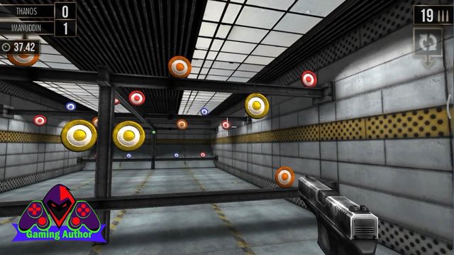Next we went into COMPLETE menu features that are on the menu features this INDOOR which is next after we successfully pressing the button named COMPLETE then we do not know the targets we have to shoot the target. Next here we fight people named THANOS who had rank PRIVATE 1st while we have ranked SERGEANT MAJOR of which it is the opposite. Next we see our goal which targets at the shooting match against THANOS that we have to do a shot toward a target which the CERAMIC CERAMIC myriad colors available so we must shoot the CERAMIC and from the color of CERAMIC that his values are different his value as such if we managed to do a shot towards the CERAMIC yellow then it will get a value of 1, if we succeed on CERAMIC Orange then we will get the value 2, If we succeed on CERAMIC red will get the value 3, if we succeed on CERAMIC blue get the value 4 and if we succeed on CERAMIC green then we will get the value 5. So I suggest you guys must be good at aiming and firing his shot by then we need to press the button on the screen of our mobile phones that are on the screen phone us so we must press him even though button was not showing up but we must press on the screen of our mobile in order to place a shot towards the target that has been provided. So we must do her quick so we can more quickly get value in comparing our opponents named THANOS. Funds on the match shooting against people named THANOS was also takes 40 minutes so we had to be fast to win from THANOS.