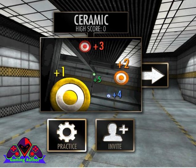 Next first before doing the shots against the native people who play this game at first we have to practice doing the shots where we had to do the exercise by pressing buttons named PRACTICE. After successfully pressing the button named the PRACTICE then we look at our shots with exercises target the CERAMIC CERAMIC which many variety of colors where the rules in doing this is we shot exercises must be good at aiming and doing shots towards the CERAMIC which if successfully if you guys about the CERAMIC then we will get value which in this CERAMIC lots of assorted color which if we manage to do a shot in the direction of the CERAMIC is yellow then it will get a value of 1, if we succeed on CERAMIC Orange then we will get the value 2,if we succeed on CERAMIC red will get the value 3, if we succeed about CERAMIC blue get the value 4 and if we succeed on CERAMIC green then we will get the value 5. So we must be good at shooting and about the CERAMIC so that we can get the value on each successful CERAMIC we shoot. How do his shots then we must press the button on the screen of our mobile phones that are on the screen phone us so we must press him even though button was not showing up but we have to press on the screen of our mobile to perform a shot towards the target that has been provided. If you guys didn't work on the CERAMIC and ye will not get any value so try to be about a lot of the colors of the CERAMIC in order to get the value. Next we can see a button named INVITE which we can play with friends if we have friends that playthis game. and to start to play the target practice with CERAMIC then we should press a key PRACTICE to begin the exercise.