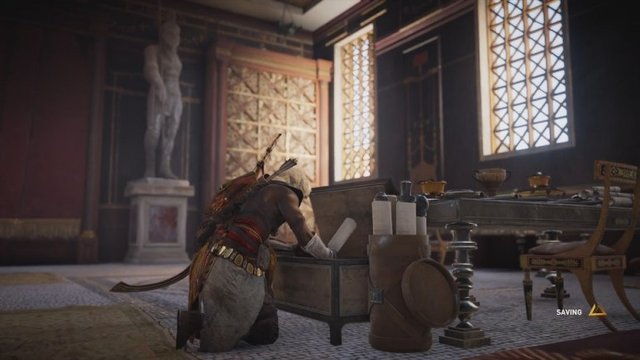While searching the Royal Scribes office you discover a chest with a false bottom. Inside you find a letter addressed to the Ibis stating the Pharaoh remains compliant and is a puppet in all things. The letter also warns that someone is killing their members and suggests the Ibis remain cautious in Siwa. The letter is stamped with the seal of the Snake which can only mean one thing. Eudoros, the Pharaoh’s Royal Scribe is the Snake. After learning Eudoros frequents the local baths you infiltrate the bathhouse and stalk your prey. You find him alone in one of the bathing pools and you pounce. He puts up a fight and gains the upper hand until you activate the hidden blade and slit his throat. His body limps into the pool but the hidden blade cost you a finger. An obvious design flaw but what’s done is done.
