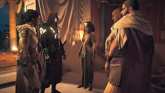 Cleopatra explains the Order of Ancients is responsible for her exile and for tearing her from the throne. They saw her brother Ptolemy as weak and easier to control. The civil war and strife in Egypt is their doing as they seek complete dominion over the lands. You assure her the Order have all been dispatched but Apollodorus explains the Snake has many heads and things are never so simple. You tell him the Snake is dead but he tells you the Snake is the Order itself and there are still many heads that survive. Cleopatra tells you she has informants spread across all the regions of Egypt and still they haven’t been able to touch the Order. They exist hidden among the populace. Shadowy figures that pluck the strings and make puppets of us all.