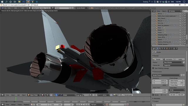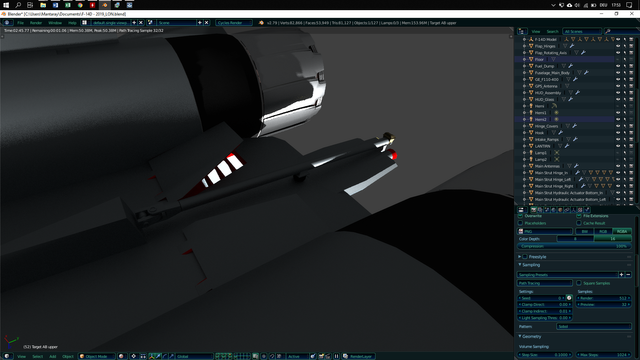 for the time being I'm working on the remaining hard surface modeling parts: finish gun/integration into front fuselage, refueling probe, engine nozzle geometry, nozzle and main landing gear geometry so they can rotate freely as intended