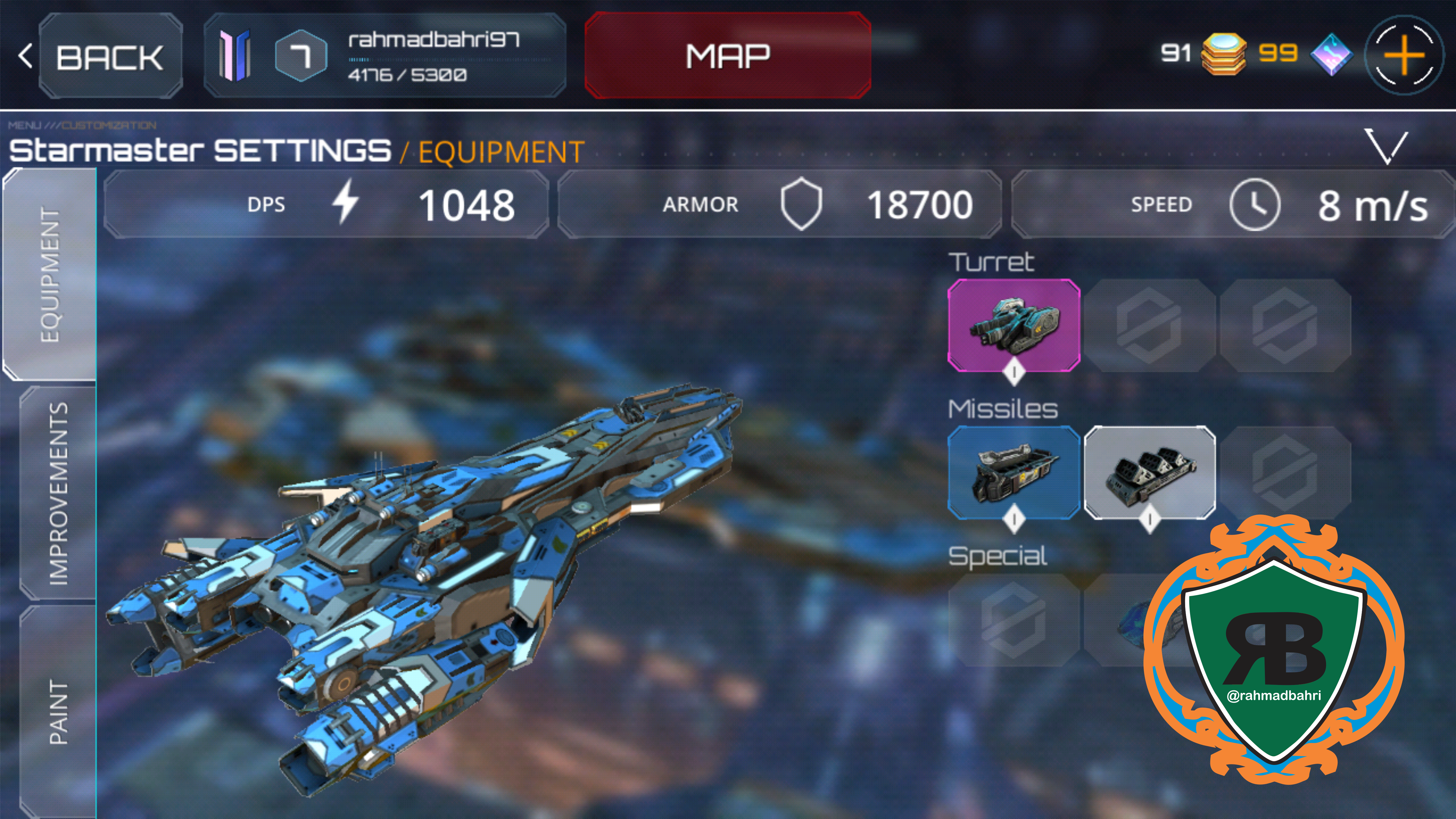 Before entering the game, we must add the strength of our warships in order to destroy all the warships we will have, in which I add strength to the walls of my vessel with the boom of 18700 HP and the firepower of 1048 DPS with the speed of our very ship note, I am shifting the speed of the ship with a double machine of 8 M / s with this we are very free to shoot and destroy all the enemies we have in the battle area.
