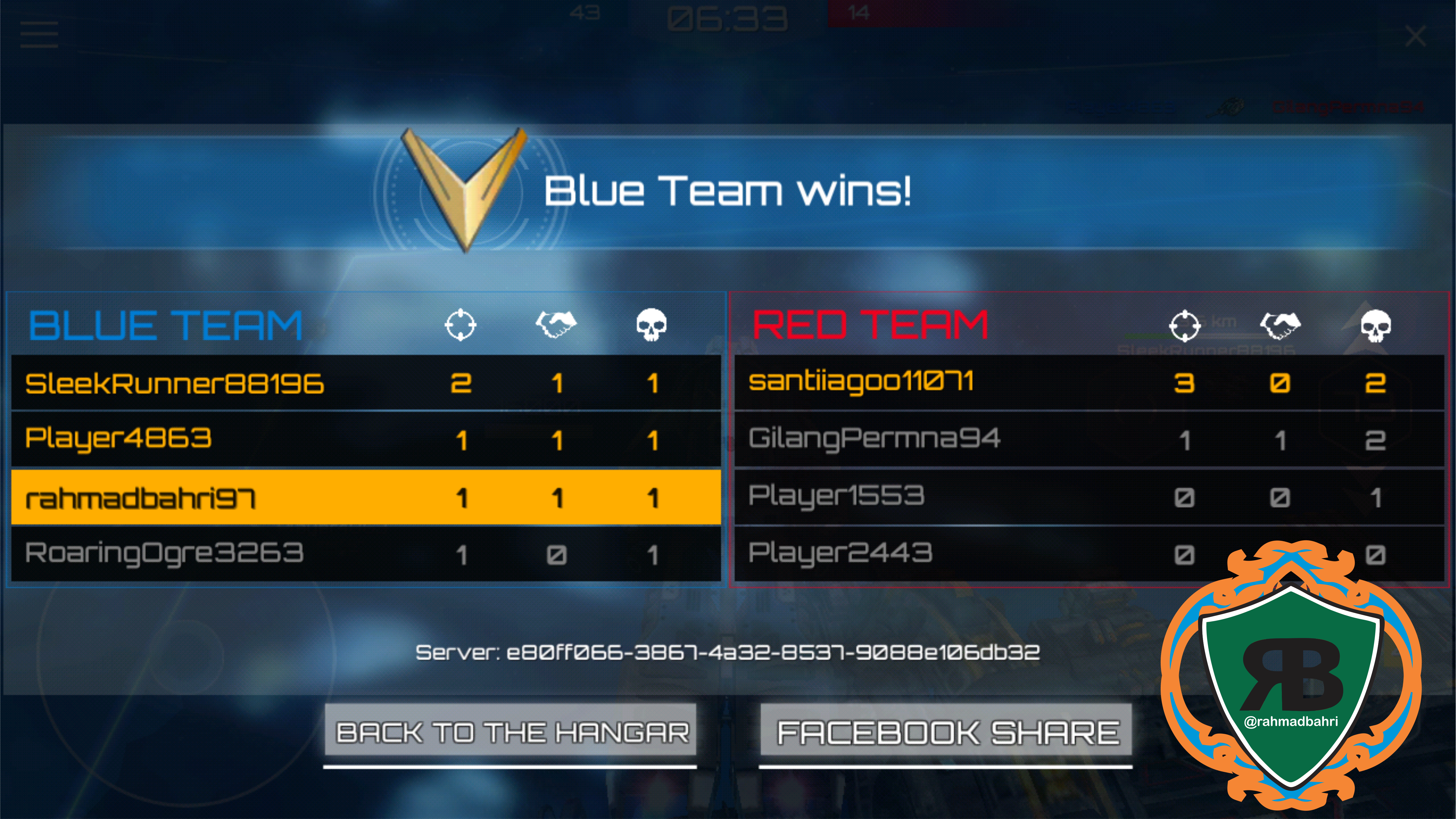 Ketika kita selesai dan keluar dari arena pertempuran akan kelua list hasil dalam permainan ini dengan hasil kita dapat menghancurkan kapal lawan sebanyak satu kali dan asisst satu kali dan kehancuran satu kali , setelah kita selesai kita langsung menekan tombol BACK TO THE HANGAR yang artinya kita harus kembali ke hangar untuk mengupgare atau pun memperbaiki kapal perang kita .