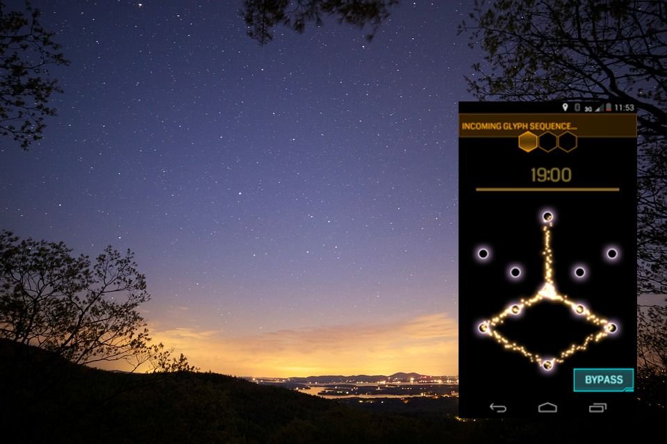 There are times that when I look up at the sky and see stars, I would point my finger and form glyphs. Glyphs are a language comparable to Anglo-Saxon and Norse runes, where characters stand alone as words rather than as letters, like in most modern languages on Earth. Glyphs are written on an eleven-dot matrix by connecting adjacent points with straight, unbroken lines.