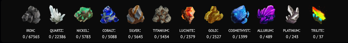 I have been pretty much been mining non-stop so you can clearly see the rarity of the different ores. to help you speculate on price as well. I would love to hear your opinions on price/resource speculations.. think I am on point? do you have a different opinion?