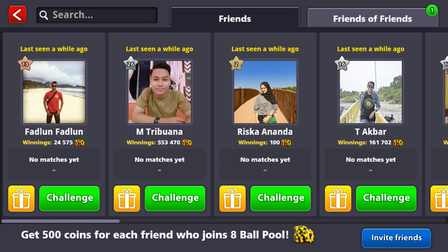 Billiard match is more fun if we compete against friends we know. In the Play With Friends menu we can compete billiards one on one with our friends who are on Facebook to try the expertise in playing billiard.