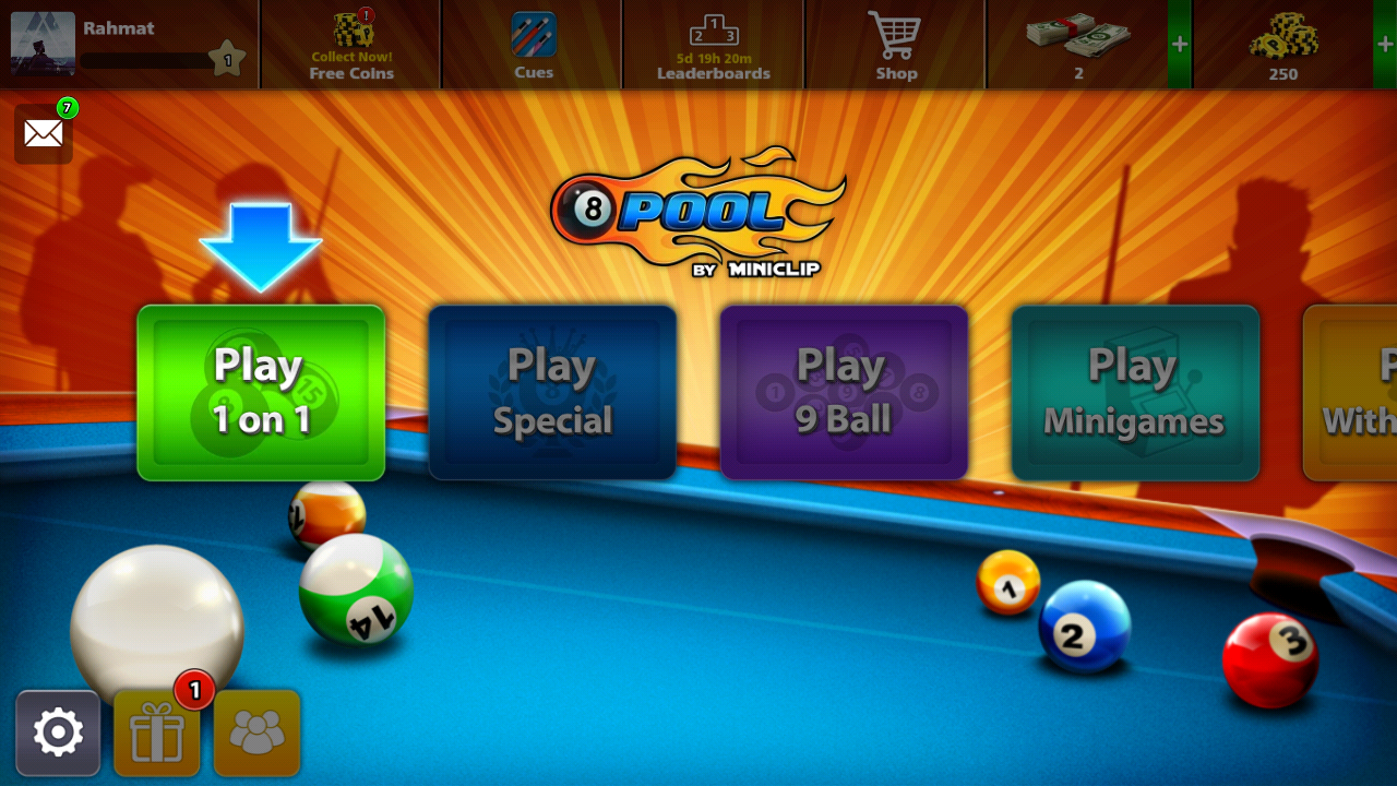 Here I will explain the beginning of this game game On the Play 1 on 1 menu we will fight a tough billiard player from various countries and various levels. To play billiard here it takes at least 50 coins to play and against other players. On the Play menu 1 on 1 is also there are some locations or places that we can play them The location of this Monaco is one of the locations that give the prize of 2 times from other location. To be able to play in this location we will pay 1000 coins for one time playing billiards against other billiard players.Playing a billiard game 8 Ball Pool is the most widely played place of Downtown London Pub where this location is the location with the cost of the cheapest game that is 50 coins and we will get 100 coins if winning the billiard match.