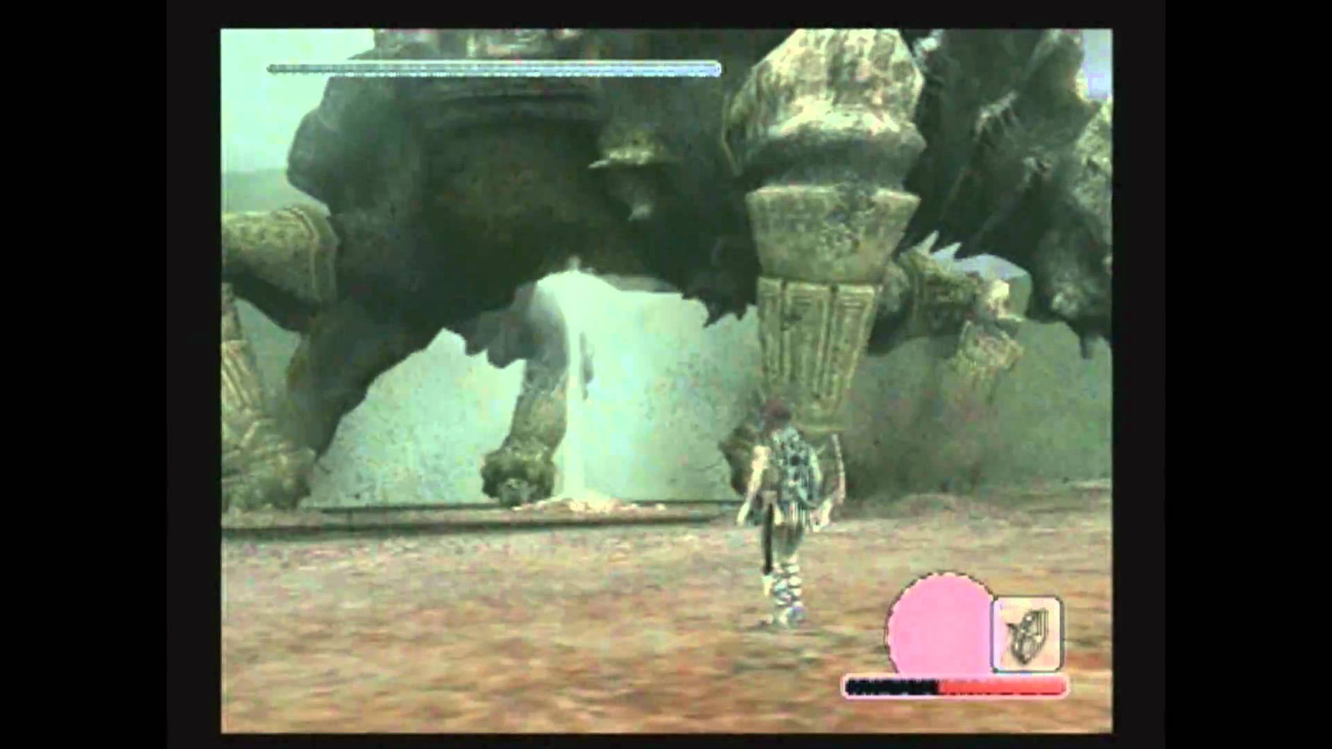 When the hero gets to his head you will notice the marked part, hold the box to charge the attack and inflict greater damage. If the hero falls repeat the same thing attacks the head. This first battle will teach you the importance of patience, maintain stamina and seek Collossus weakness.