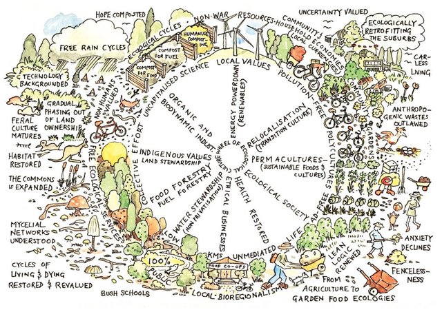 ‘The Wheel of Ecological Culture’ illustration by Patrick Jones and features in the 2017 Permaculture Calendar.