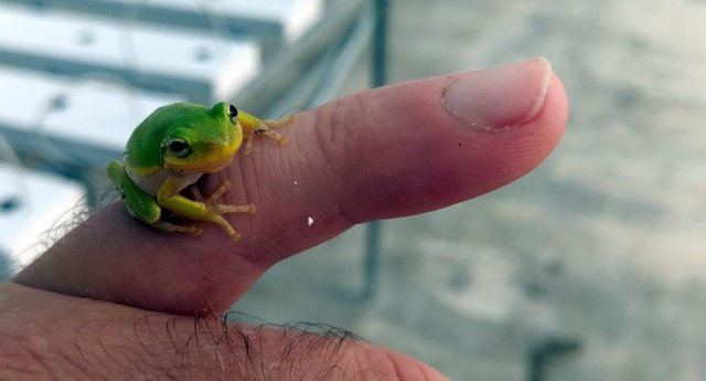 We have treefrogs where I live too. I've never been brave enough to catch them with my hands. For some reason they get into the house and I'm chasing them with tupperware. LOL They are cute though!