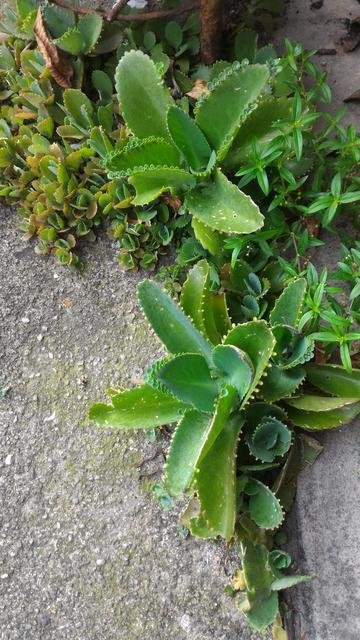These shrubs grows on a cement floor with its root grown into little cracks. Under such a situation the shrub has to find its way to grow. Obviously, this shrub has its natural way to store water within its leaves to maintain its life.