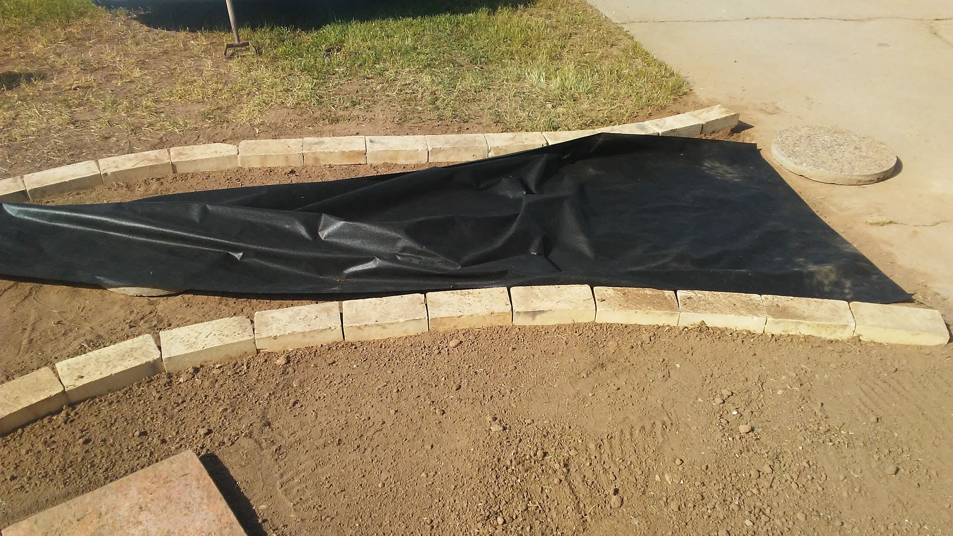 First step was to remove the pavers from the path so that we could lay down the weed blocking fabric.