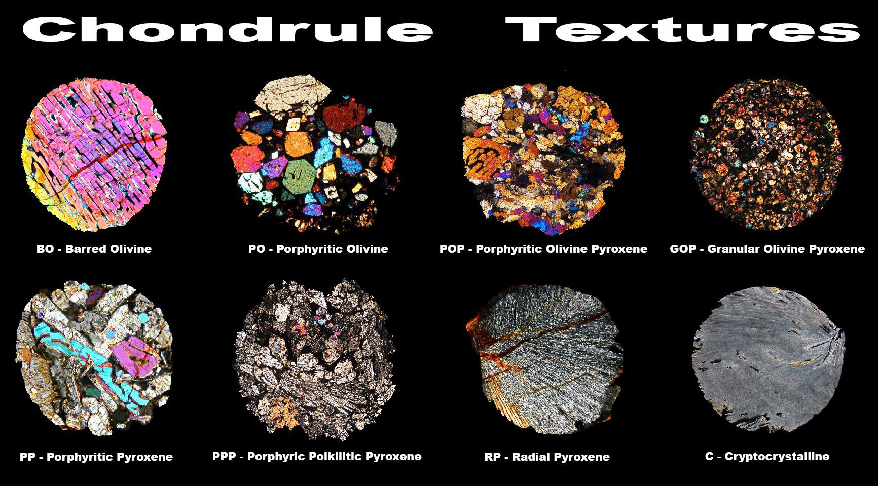 Presenza di condrule, matrice lievemente ferrosa e di origine antichissima (4,2 miliardi di anni fa)