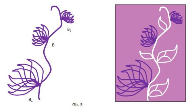 To obtain the artistic position on the stalk, then B2 is reflected on the vertical line so that the arrangement is made to form kumbung kaumbakan motif (Fig.5).