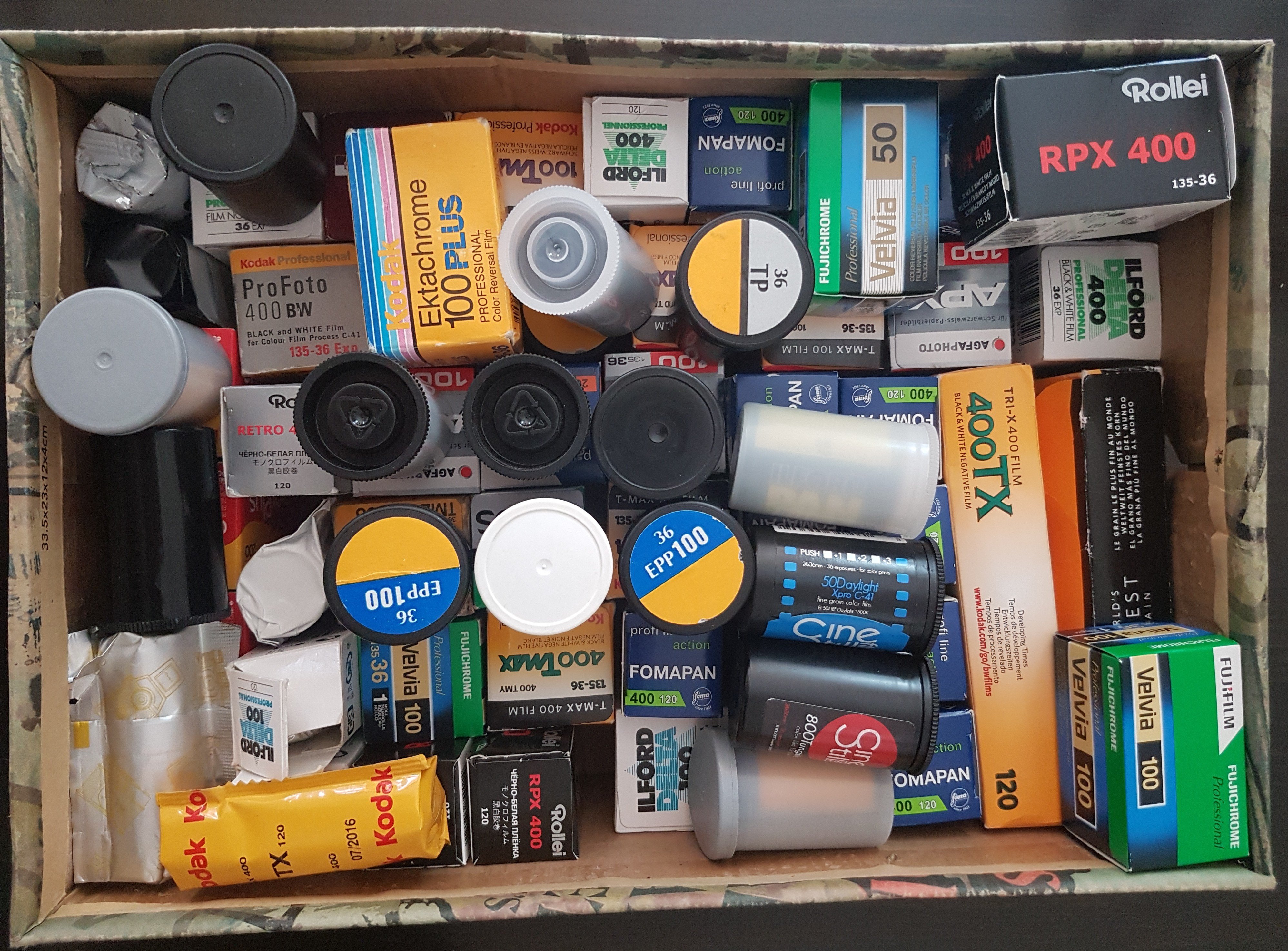 you can see here also very old, definitely expired in 1995 Kodak Ektachrome, Fujifilm Velvia and Provia expired in 2005
